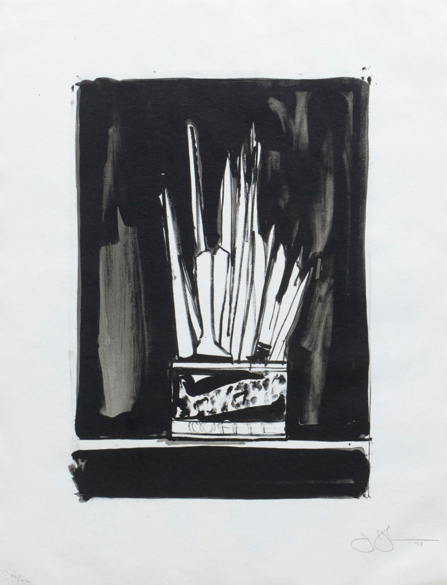 この版画の連作では、エドヴァルド・ムンクの自画像のリトグラフからの影響をほのめかしており、画家にとって欠かすことのできない筆がモチーフとなっていることも考えればジャスパー・ジョーンズなりの自画像とも解釈することができるかもしれない。