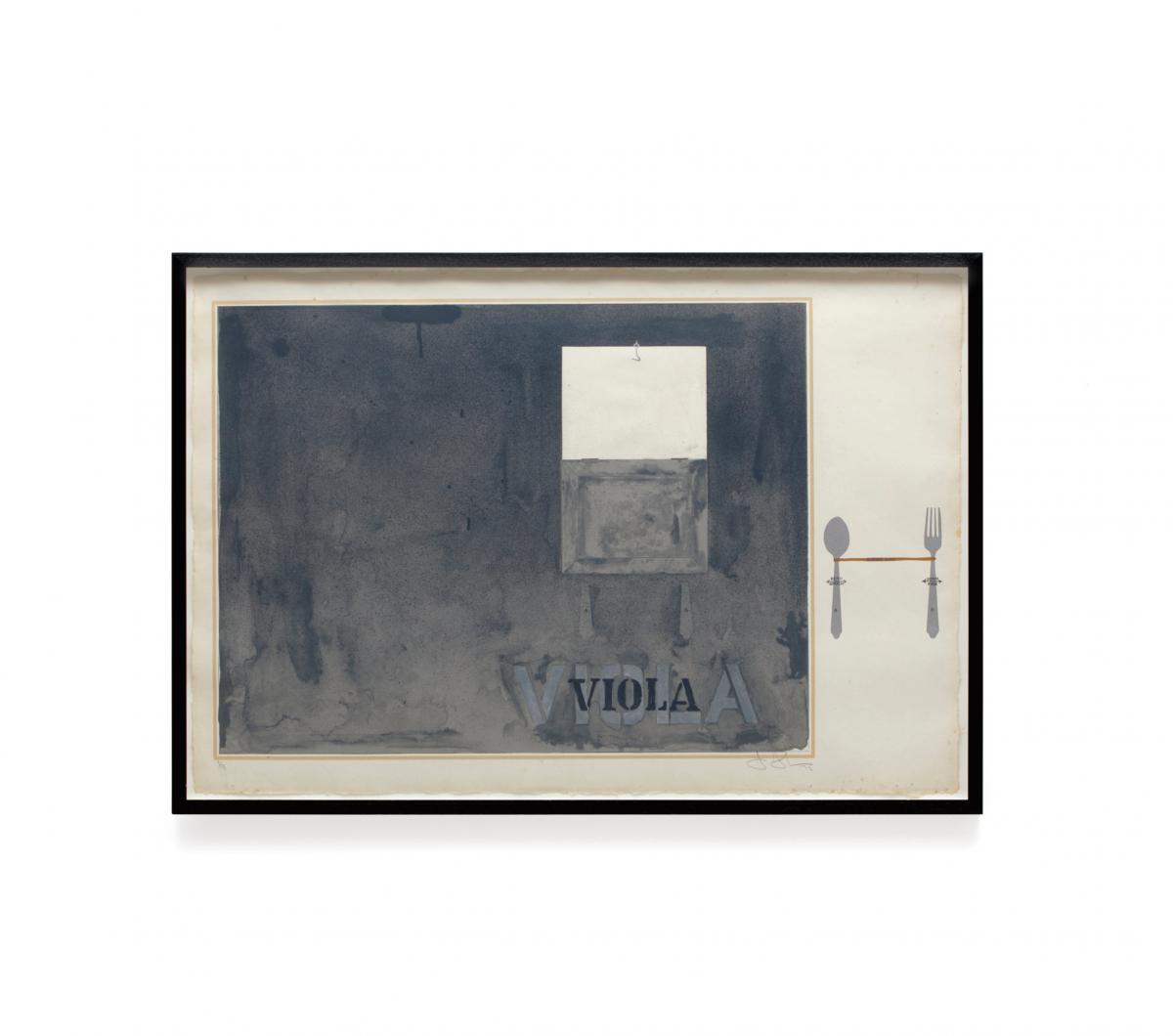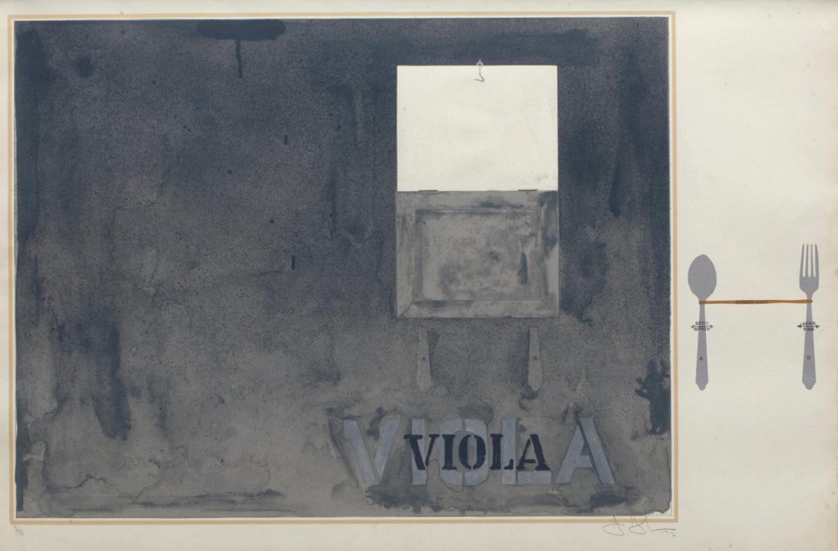 1960年代に描かれた《肖像―ヴィオラ・ファーバー》というカンヴァスのついた絵画品が元とされているが、他にも《カンヴァス》(1956)という作品ではカンヴァスにそれよりサイズの小さいカンヴァスが裏面を向けて貼り付けられているものなども制作しており、それらの流れを汲んだものということができる。版画作品ではカンヴァスの裏面を貼り付けるわけにはいかないので、カンヴァスの一部が落ちて空白が見えている。