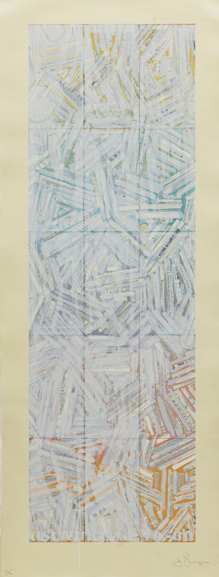 日本文化への興味を示していたジャスパー・ジョーンズが江戸時代の歌舞伎の演目「新薄雪物語」を下敷きとして手がけた作品。淡い色使いがタイトルを想起させる。ジョーンズがある時期から頻繁に用いたクロスハッチング作品の中でも特に複雑なものとなっている。シルクスクリーン、リトグラフ両方の技法で制作されており、ジョーンズの表現方法への探究心が表れた作品となっている。