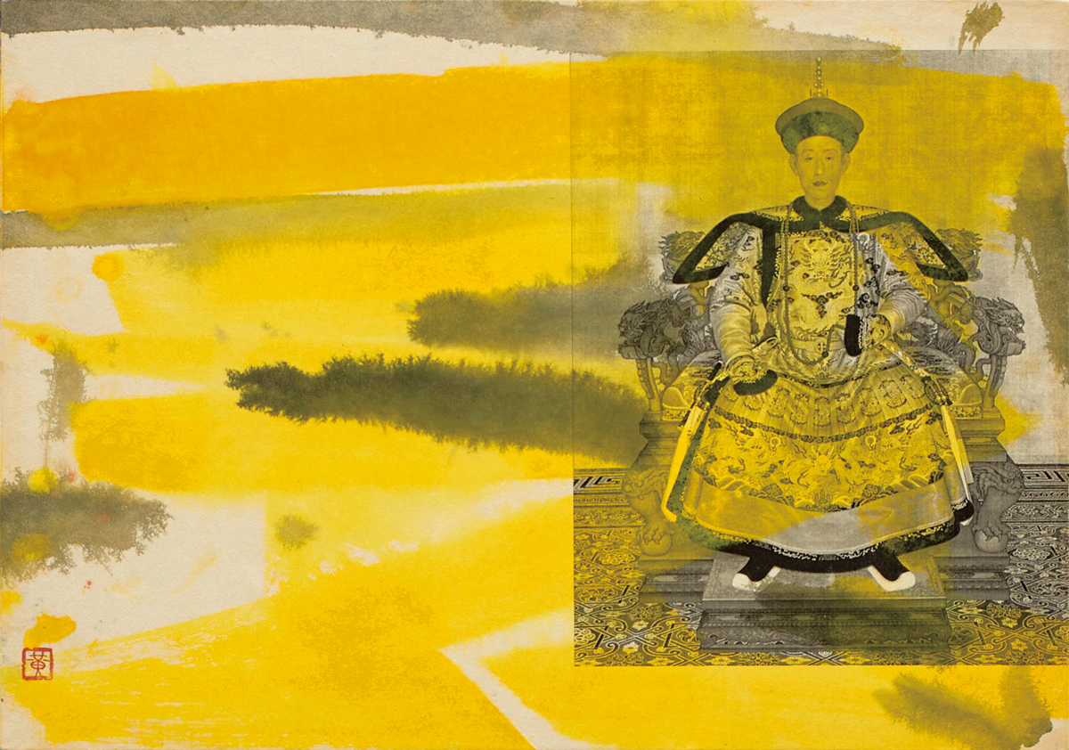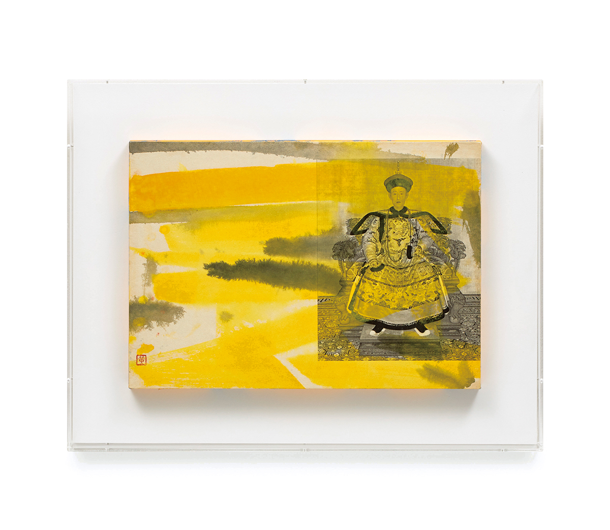 watercolor, ink and collage on paper mounted on wooden board